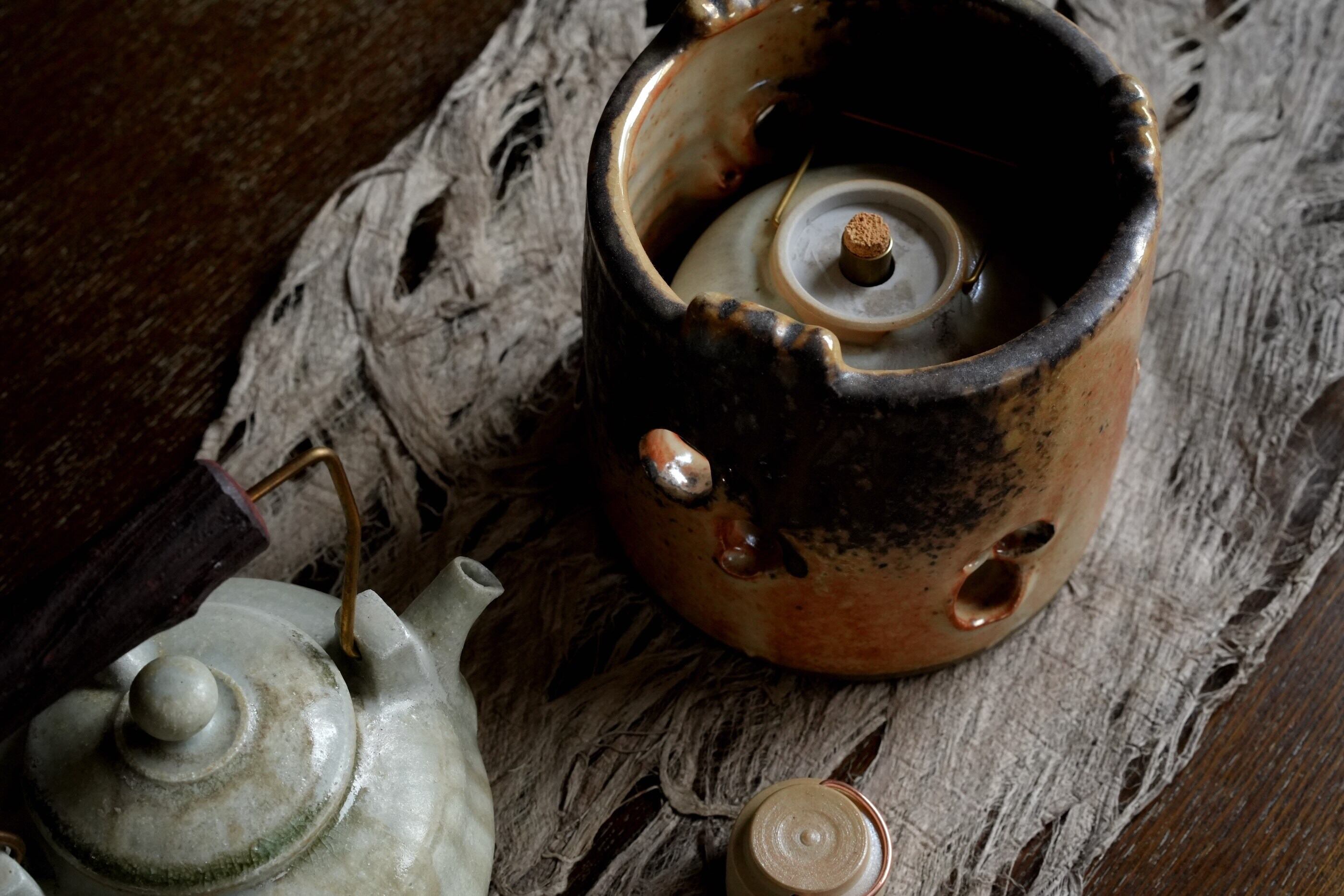【栾波(らんば)】薪窯焼成 茶席用 陶製アルコール炉 / 【Bo Luan】Ceramic Alcohol Burner for Tea Settings