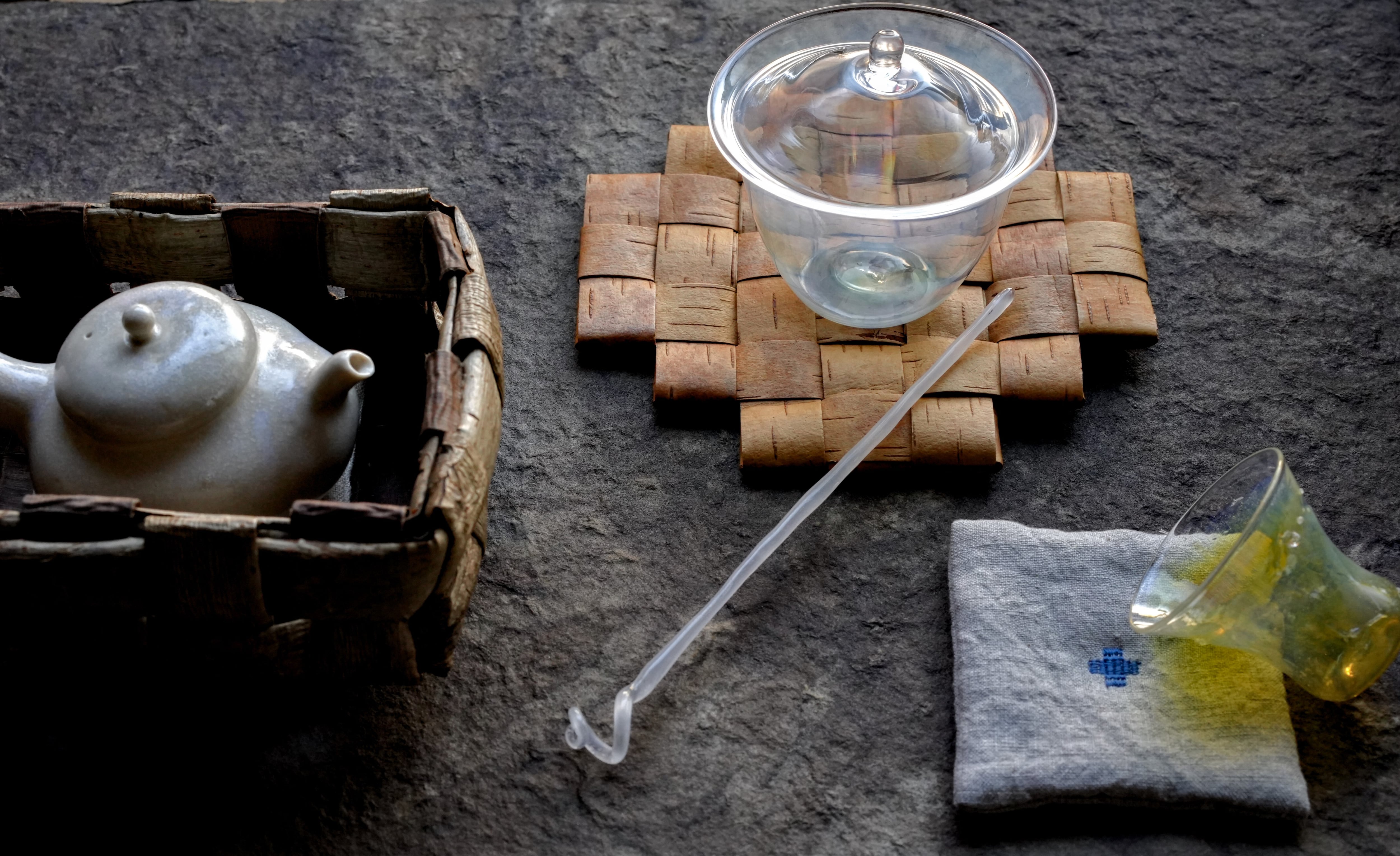 Rather than aiming for uniformity, the weaving preserves the natural variations in thickness, color, and texture of the birch bark. Over time, traces of use gradually appear, becoming part of the mat’s character. While protecting both vessel and surface, it maintains the original tactility and warmth of the material without excessive intervention.