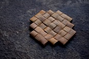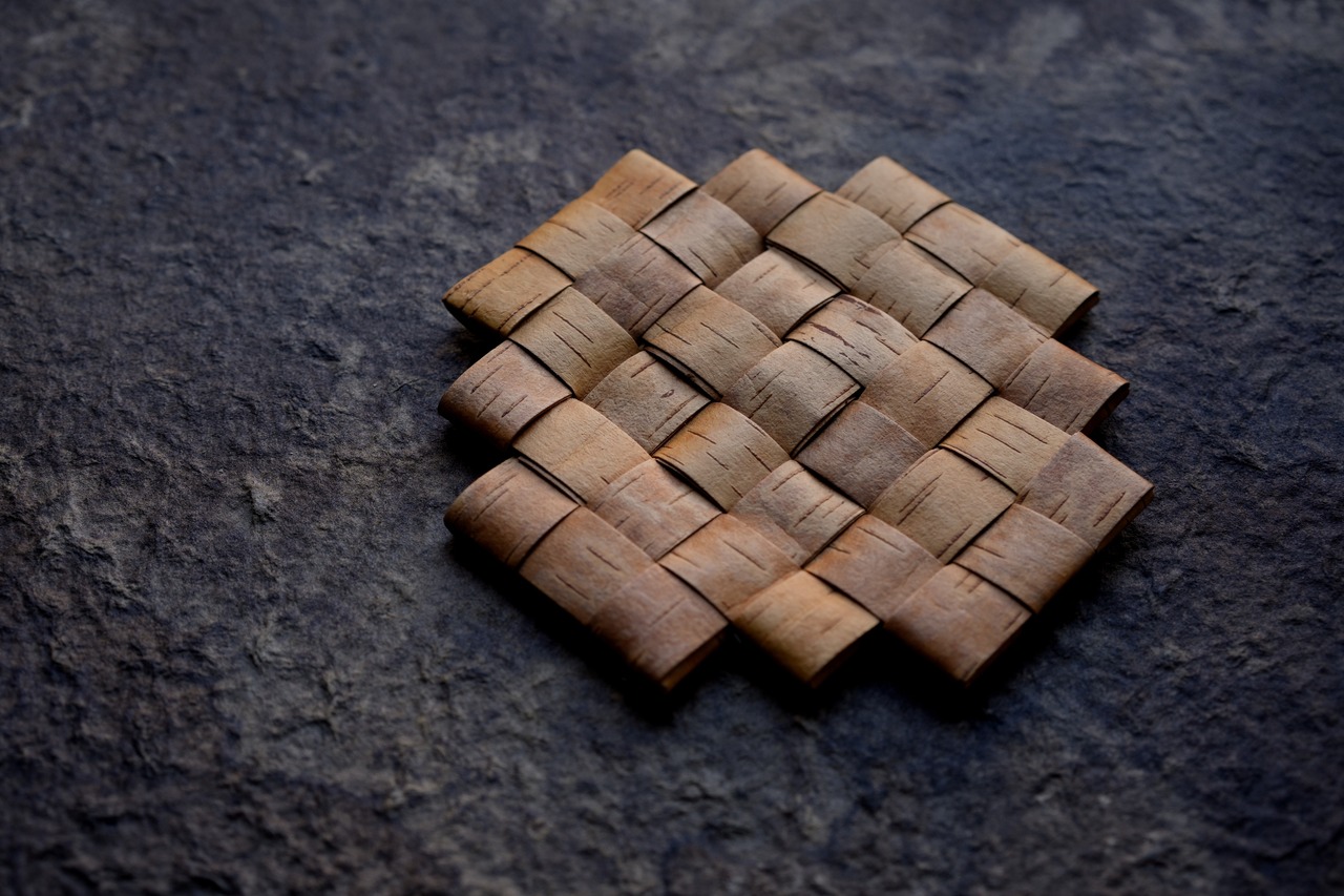 天然の樺皮を用い、手作業で編み上げた敷きものです。樺皮が本来持つ防湿性としなやかさを活かし、裁断と交錯する編みによって、安定感とほどよい弾力のある構造に仕上げています。茶器などの器物の下敷きとして、また卓上の断熱や日常の緩衝材としてお使いいただけます。