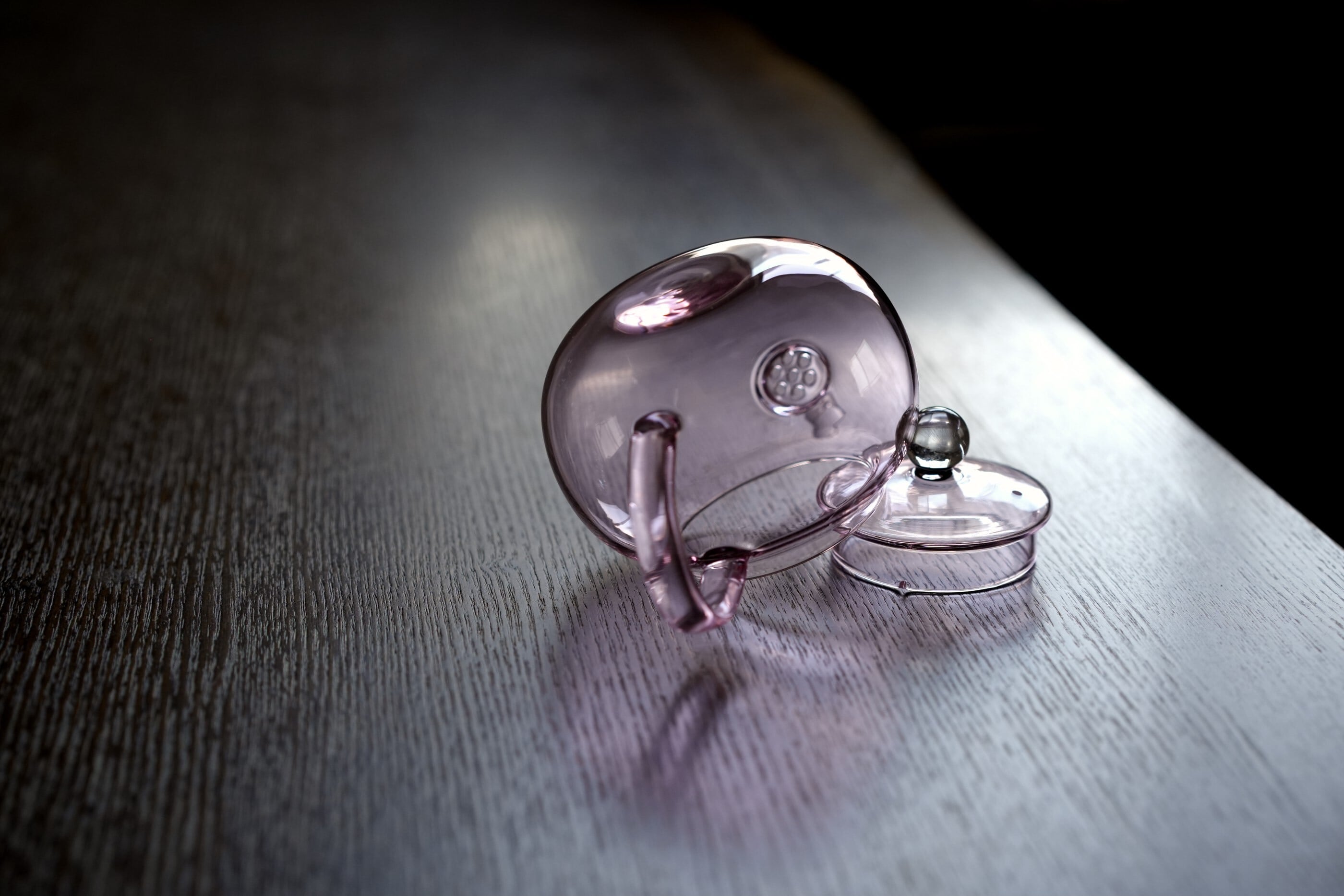 本品はガラス職人による手吹き作品のため、制作工程上、気泡・流れ模様・黒点などの手仕事の痕跡が見られる場合がございます