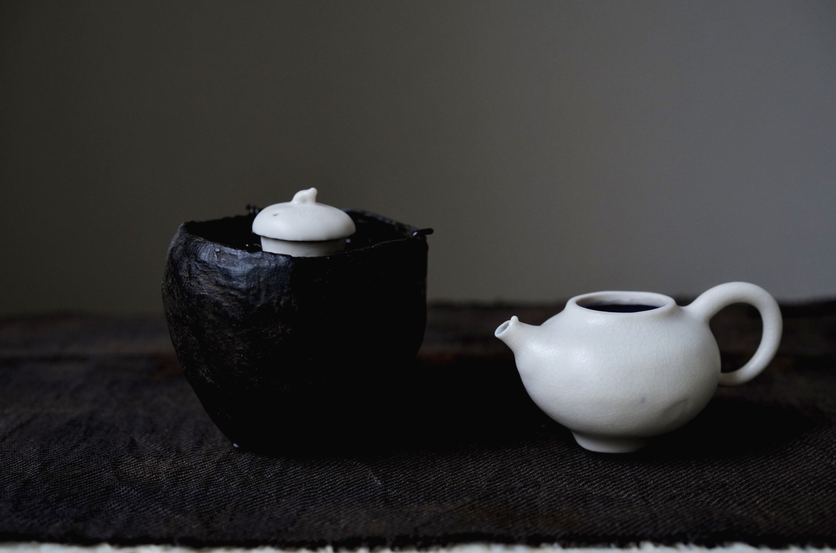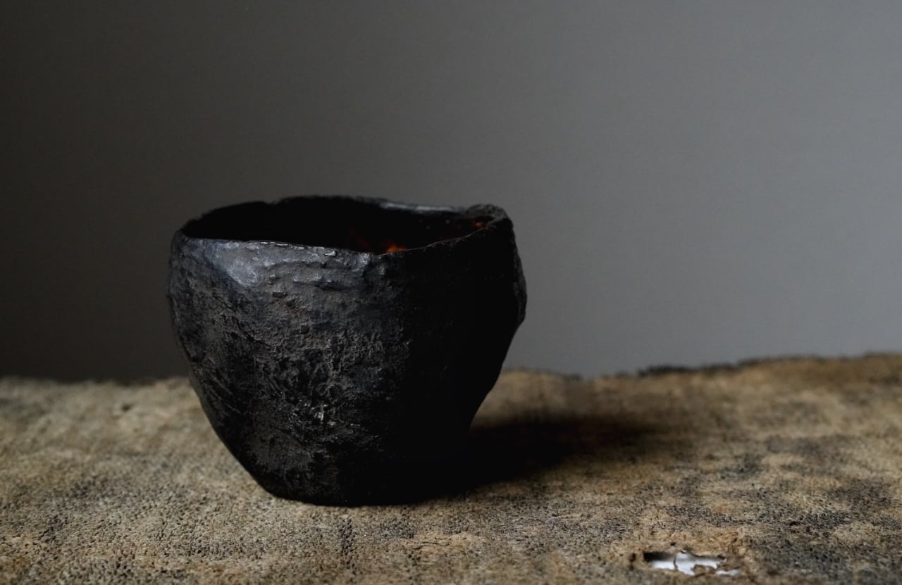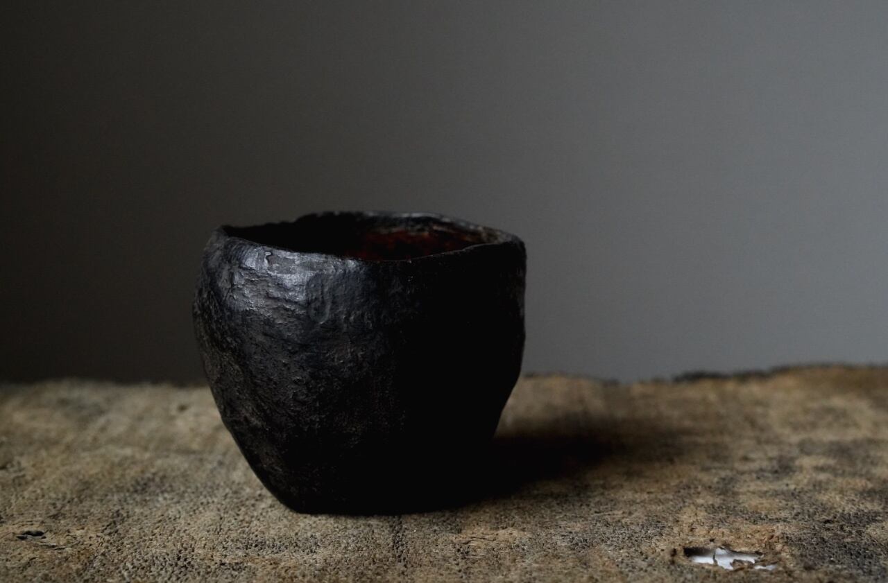 【阿源】黒漆建水 花入 盖置 [Ayuan] Black Lacquer Kensui